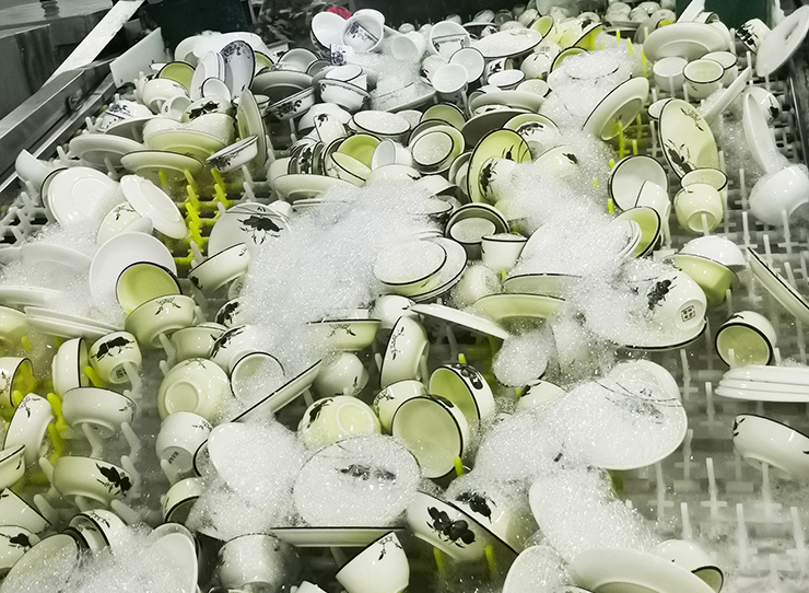 洗涤剂清洗:使用含洗涤剂的溶液清洗餐具表面,以确保彻底去除油脂和污垢。
